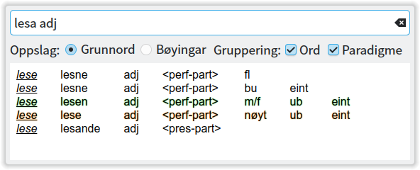 Elles, dersom du er i tvil om bøyinga av eit ord, er det berre å bruka ordbøkene på nett eller programmet ordbanken. Programmet gjer det lett å slå opp alle formene av eit grunnord og viser resultatet i ein oversiktleg, fargekoda tabell.